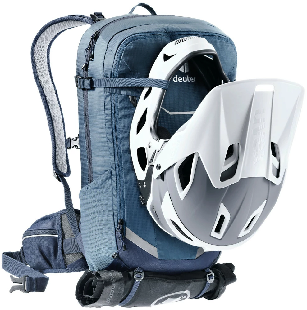 Maximalen Schutz bietet der extra leichte und herausnehmbare Rücken-protektor vor Verletzungen. Nach einem ernstzunehmenden Sturz ersetzt Deuter einen deformierten Protektor kostenlos (Free Crash Replacement, zwei Jahre). Der Protektor-Rucksack sorgt zusätzlich in Kombination mit dem Airstripes-System für eine angenehme Belüftung am Rücken.