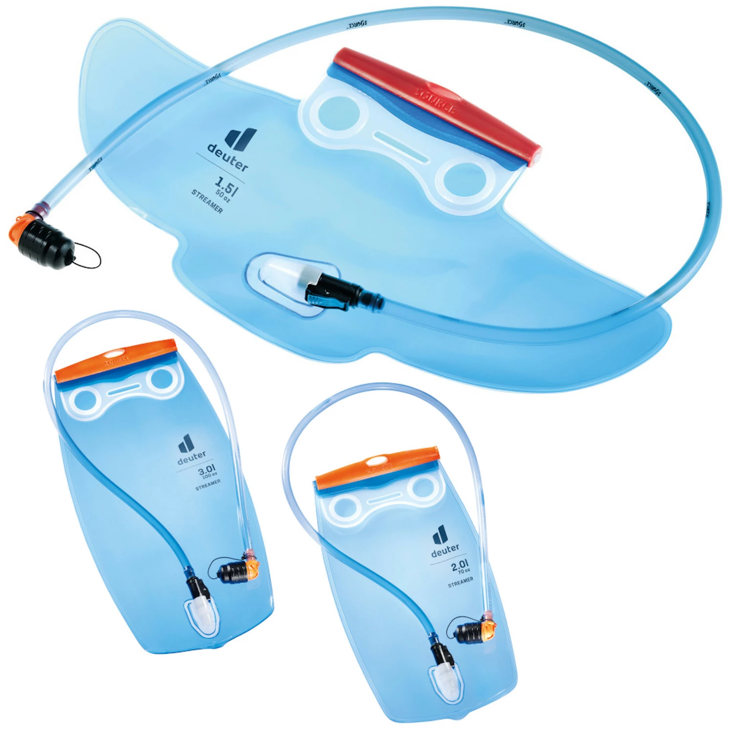 Diese Trinksysteme erlauben eine kontinuierliche Zufuhr von Flüssigkeit, ohne die sportliche Betätigung unterbrechen zu müssen. Deuter Rucksäcke sind speziell auf die Trinksysteme abgestimmt. Das gesamte System ist BPA und PFC frei. Trinksystem-Kompetenz von SOURCE: Taste-FreeTM: Die Innenfläche der Trinkblase und des Schlauchs ist so glatt wie Glas. Durch diese molekularen Materialeigenschaften ist der Streamer geschmacksneutral, sehr hygienisch und einfach zu reinigen. Grunge-GuardTM: Diese stabil mit dem Trägermaterial verbundene Beschichtung unterbindet die Ansiedlung von Bakterien im Trinksystem. Easy Clean: Bequem befüllen und säubern lässt sich die Trinkblasen durch die große Öffnung über die komplette Breite absolut auslaufsicher durch Schiebe-Clip Verschluss. Dirt Guard: Die aufsteckbare Schutzkappe hält während eines längeren Transportes Schmutz vom Mundstück fern.