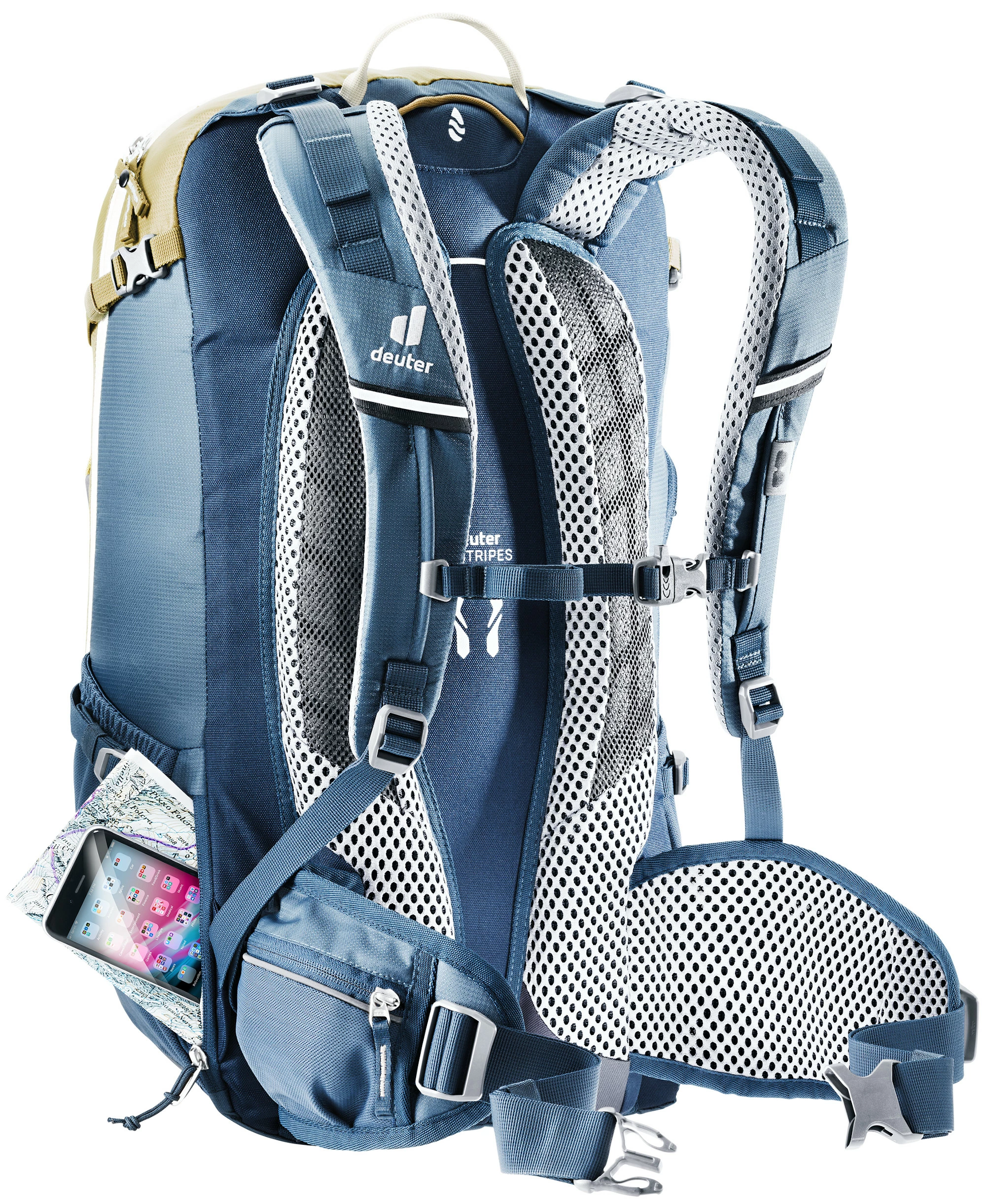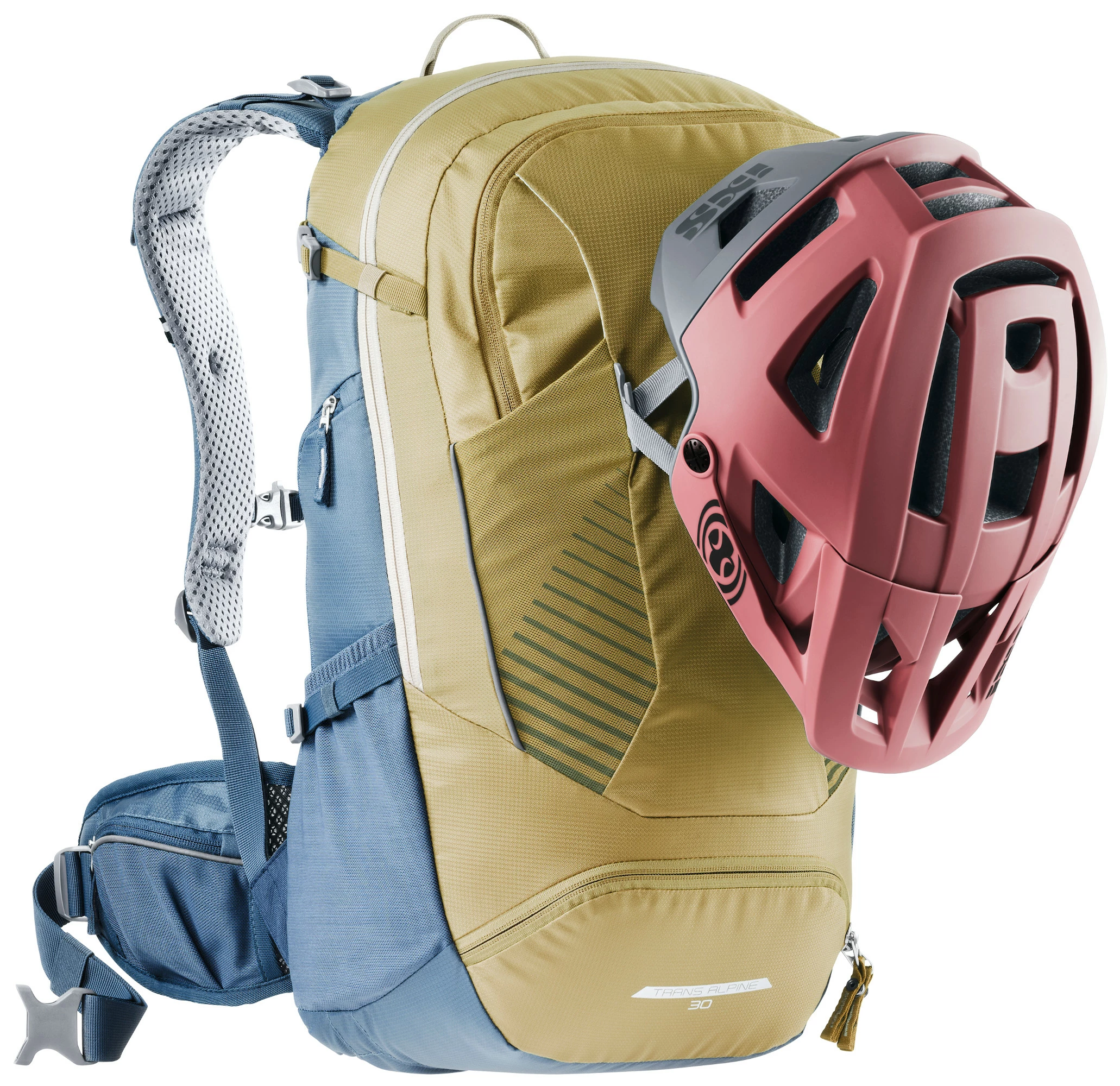 Der Trans Alpin Rucksack in neuem Design bietet die gewohnte Qualität und Ausstattung. Ganz neu ist die einfach und schnell handzuhabende Helmhalterung sowie das von außen leicht zugängliche Pumpenfach. Das neue Rückensystem bietet verbesserte Belüftung aufgrund geringerer Auflagefläche und flexiblere Schulterträger für mehr Bewegungsfreiheit.