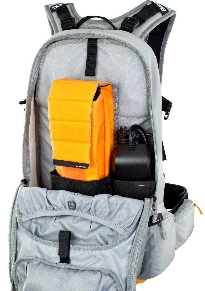E-Mountainbike Abenteurer kennen das Dilemma: Ersatzakkus und Zubehör für E-Bikes bringen nicht nur mehr Gewicht mit sich, sie müssen auch sicher und rutschfest verstaut werden und dürfen im Falle eines Sturzes keine zusätzliche Gefahr für die Wirbelsäule darstellen. Mit dem Fr Enduro E-RIDE 16 löst EVOC diese Probleme.