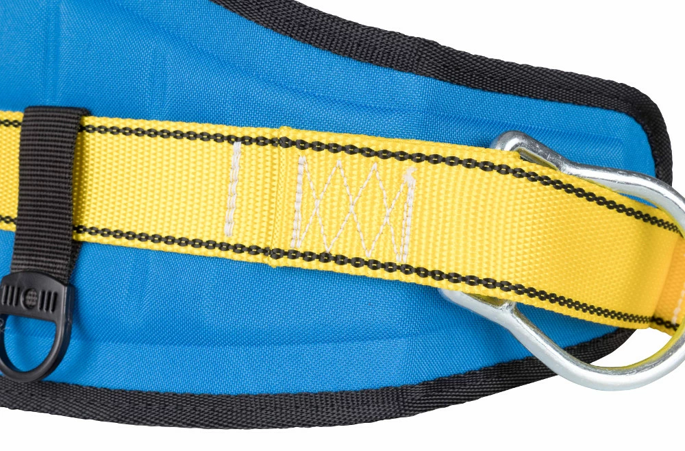 Gepolsterter Taillen-Positioniergurt mit zwei seitlichen Befestigungspunkten für ein Sicherungsseil.