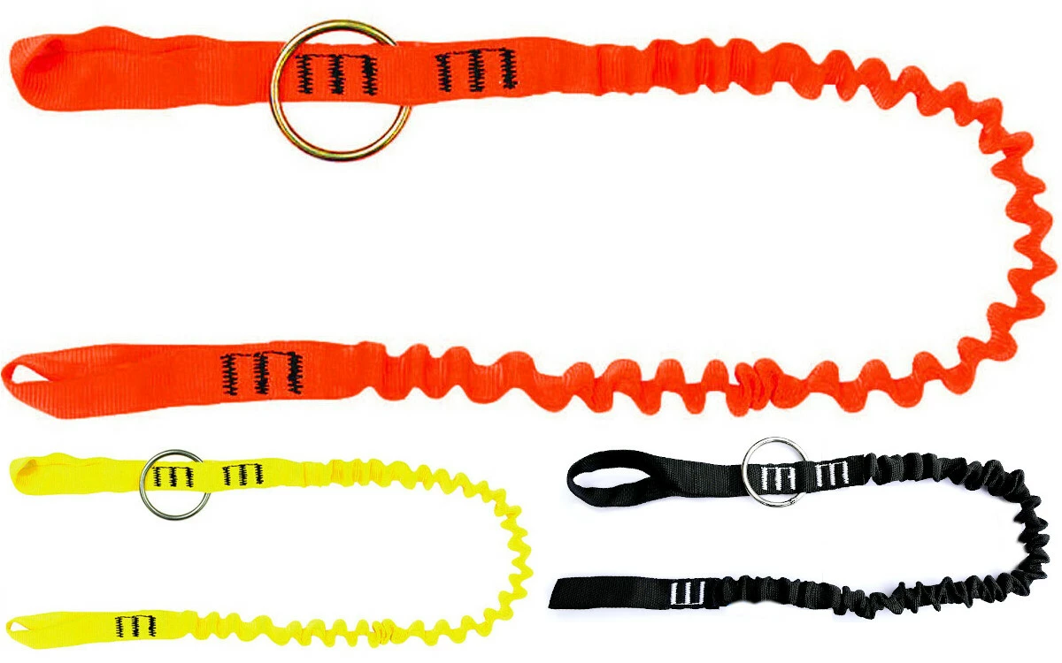 Der Strop ist elastisch, wodurch fallendes Werkzeug nicht schlagartig ins Seil fällt. Er ist aus robustem Polyester gefertig.