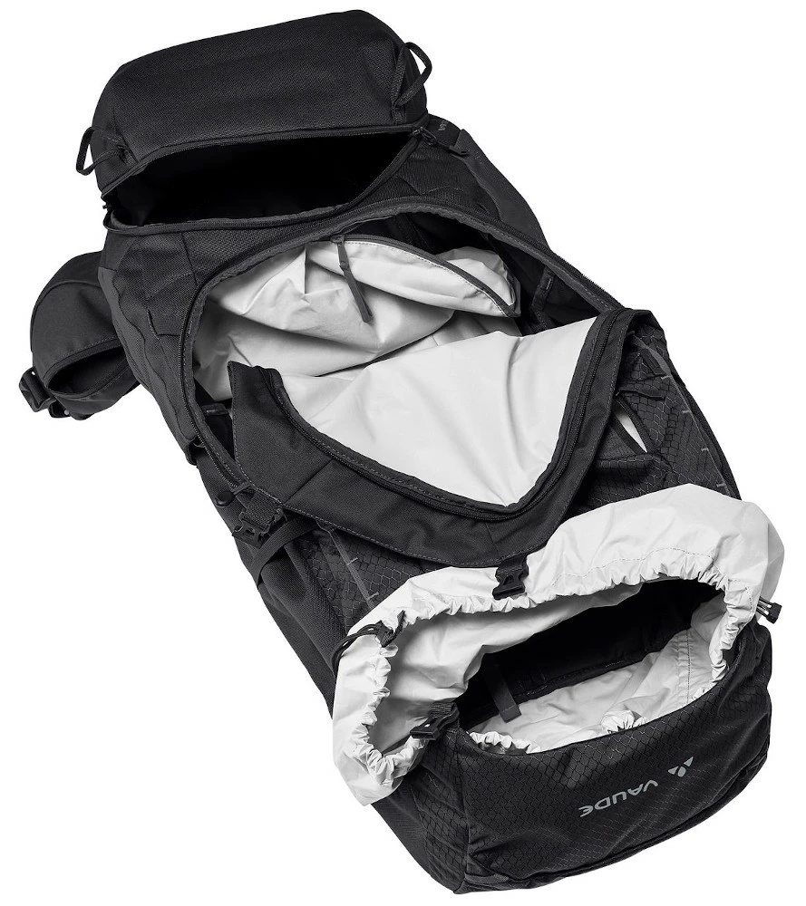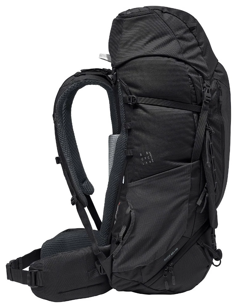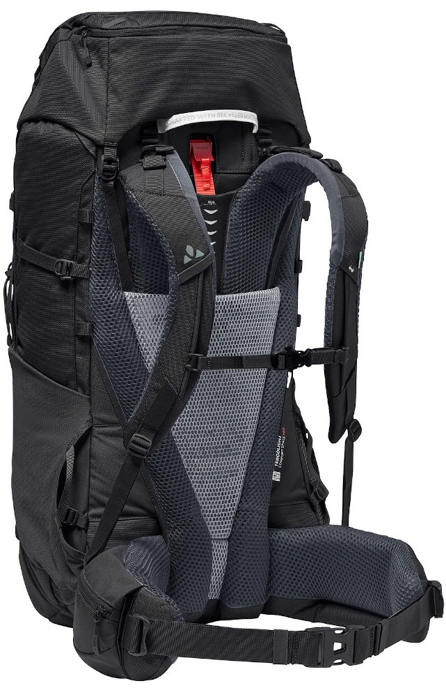 Auf langen Touren in abgelegenen Regionen transportieren Trekkingprofis mit dem großen Trekkingrucksack mit 65 Liter Volumen Verpflegung und Ausrüstung für mehrere Wochen – egal, ob Trekking in Island oder Südamerika. Das Tergolight Comfort Space Pro-Tragesystem gewährleistet optimale Gewichtsverteilung bei schweren Lasten. Die spezielle Rückenpolsterung des Trekkingrucksacks entlastet das Iliosakralgelenk – der Spalt im unteren Rückenbereich kann Druckschmerzen vorbeugen. Die gepolsterten Ergoshape-Schulterträger entlasten zusätzlich und bieten Bewegungsfreiheit für die Arme. Rückenlänge sowie Lastenpositionierung sind individuell anpassbar und sorgen für den korrekten Sitz des Trekkingrucksacks. Der dick gepolsterte Hüftgurt mit Tasche sorgt für extra hohen Tragekomfort. Das Gepäck lässt sich von oben und vorne aus dem Hauptfach entnehmen. Ein Schlafsack o. ä. passt ins separate Bodenfach. Alles, was unterwegs griffbereit sein soll, nimmt die Fronttasche auf. Die Seitentaschen sind erreichbar, ohne den Trekkingrucksack abzusetzen. Die Daisy Chain und die variabel positionierbaren Kompressionsriemen bieten viel Befestigungsmöglichkeiten für weitere Ausrüstung. Unter dem Deckel befindet sich für den Fall der Fälle eine Ersatzschnalle. Der höhenverstellbare, abnehmbare Deckel ermöglicht die Zuladung von weiteren 10 Litern – dieser lässt sich zudem zur Hüfttasche umfunktionieren. Auch bei großem Gepäck kann sich der Kopf vor dem Deckel frei bewegen. Mit der integrierten Regenhülle trotzt der Trekkingrucksack jedem Wetter. Das Hauptmaterial ist zu 100 % recycelt und extrem robust und abriebfest. Das VAUDE Green Shape-Label gewährleistet ein umweltfreundliches, funktionelles Produkt aus nachhaltigen, bluesign® zertifizierten Materialien.