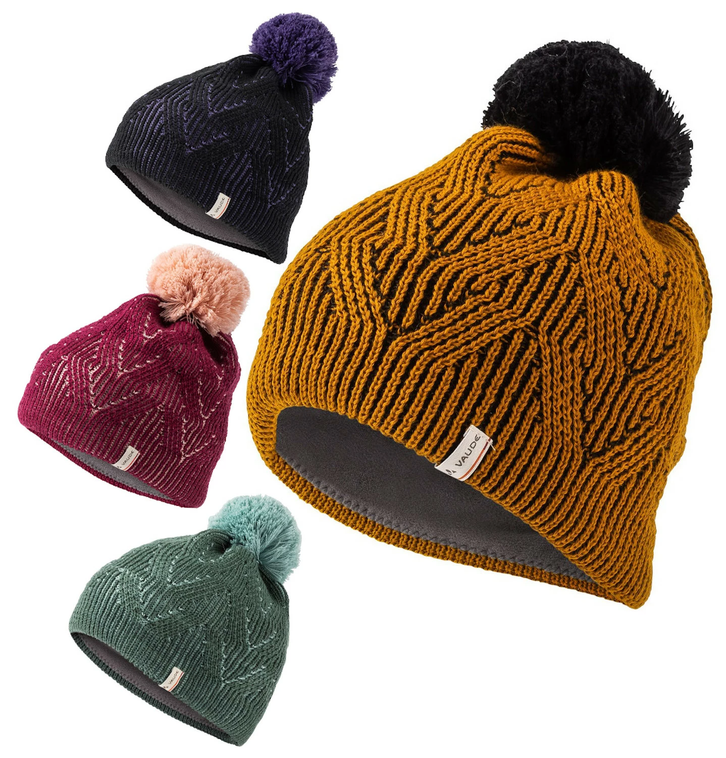 Die modisch gemusterte Damenmütze mit Bommel und integriertem Fleeceband hält auf Wanderungen im Winter zuverlässig warm, ist aber auch im Alltag und auf dem Weihnachtsmarkt ein lässiges Accessoire. Die Materialmischung aus Wolle und Polyacryl bietet den perfekten Mix aus Tragekomfort und Funktionalität. Das VAUDE Green Shape-Label steht für ein umweltfreundliches, funktionelles Produkt aus nachhaltigen Materialien.