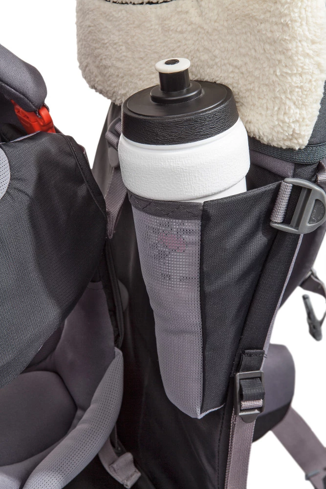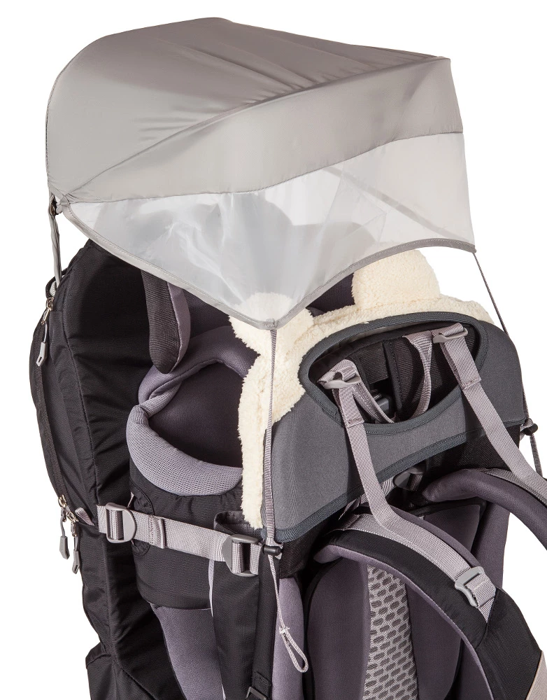 Diese umfangreich ausgestattete Premium Kindertrage bietet Kind und Träger viel Komfort! Optimal für Kinder bis max. 18 kg Körpergewicht. Die Shuttle sitzt durch die gepolsterte Tergolight-Rückenkonstruktion und die gewichtsentlastenden Hüftpolster sicher und bequem am Rücken, was vor allem in eher unwegsamem Gelände von Vorteil ist. Die seitlichen Fußschlaufen können exakt auf die Beinlänge eingestellt werden, so schlafen dem Kind die Füße nicht ein und es kann die Tour in vollen Zügen genießen. In den geräumigen Taschen können Trinkflasche, Windeln und Kleinutensilien leicht zugänglich verstaut werden; im großen Bodenfach sind größere Gepäckstücke wie Sitzdecke, Spielzeug und Brotzeit sicher verwahrt. Ein Sonnenschutzdach ist integriert, der zusätzliche Kinder-Regenschutz kann schnell übergezogen werden; eine Kopfstütze sowie ein weicher, leicht waschbarer Froschaugen Aufsatz bieten zusätzlichen Komfort. Optional bieten wir einen Regenüberzug für die komplette Trage an. Für Sicherheit sorgen u. a. auch das eingriffsichere Standfußgelenk, das sogar während des Tragens ver- und entriegelt werden kann sowie die orangefarbigen, wichtigen Anschnallgurte.