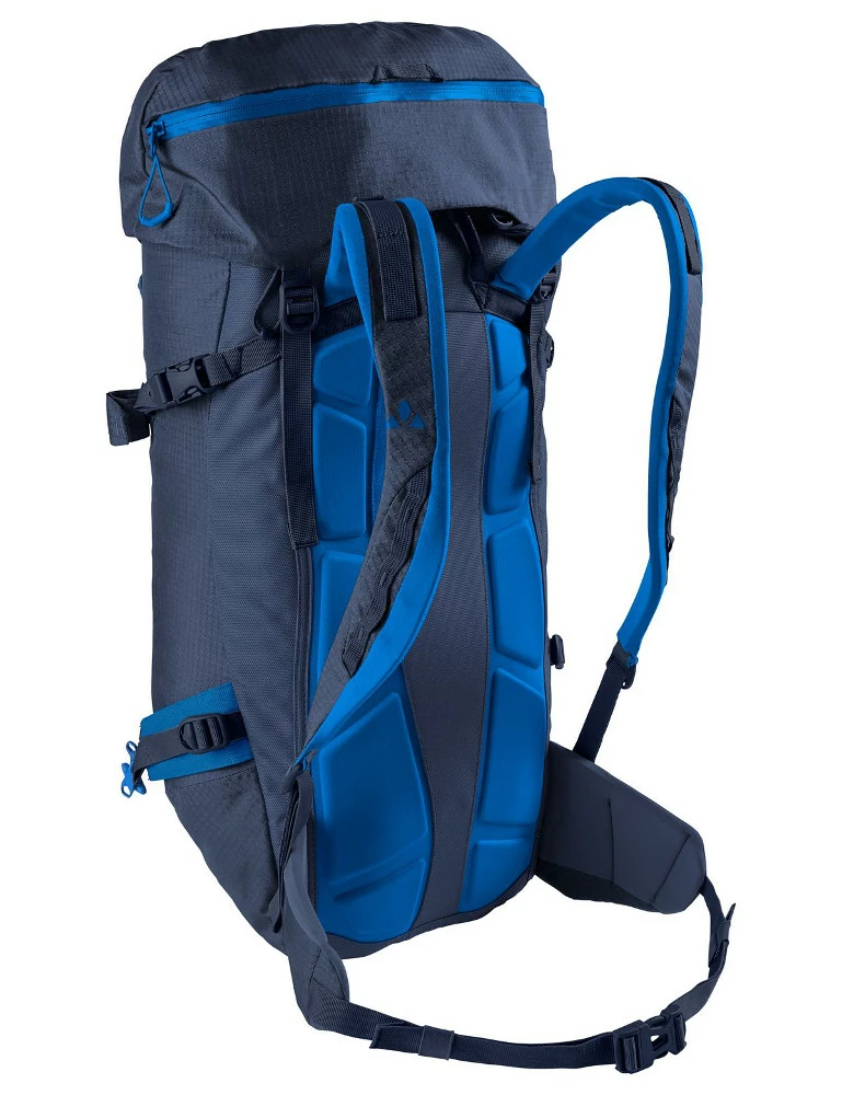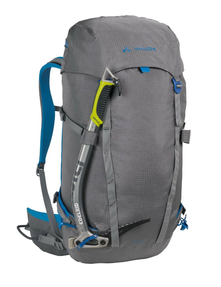 Vielseitiger Alpinrucksack für lange Tagestouren und den ganzjährigen Einsatz beim Klettern, Bergsteigen und Skitourengehen. Sitzt sehr kompakt und stabil durch den Körperkontaktrücken (Synergy Mold Light mit anpassbarem Alurahmen). Die ergonomisch geformten Schulterträger bieten große Bewegungsfreiheit im Schulterbereich. Der flache, kurze Hüftflügel stört nicht beim Klettern und Tragen eines Sitzgurts. Der Tourenrucksack besticht durch seine cleane Optik und den Verzicht auf unnötigen Schnickschnack. Das Material ist robust und stark wasserabweisend, der Boden dank getapter Nähte wasserdicht. Der höhenverstellbare Deckel bietet einen sinnvoll unterteilten Stauraum für schnellzugängliche Dinge. Darunter verbirgt sich eine Seilhalterung. Das Trinksystemfach im Inneren ist größer dimensioniert und nimmt im Winter die Lawinenschaufel auf; Steckfächer für Schaufelstiel und Sonde sind vorhanden. Außen am Rucksack lassen sich zwei Eisgeräte und der Helm befestigen. Seitliche Holster und die Kompressionsriemen geben den Ski einen sicheren Halt. Zusätzlich lassen sich über zwei Funktionsleisten weitere Gegenstände auf der Front fixieren. Der Rupal 35+ richtet sich an Bergsportler, die mit einem einzigen Rucksack eine große Bandbreite an alpinen Unternehmungen abdecken möchten.