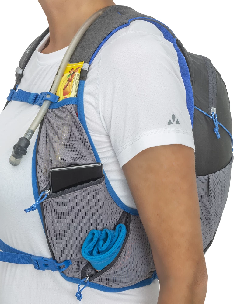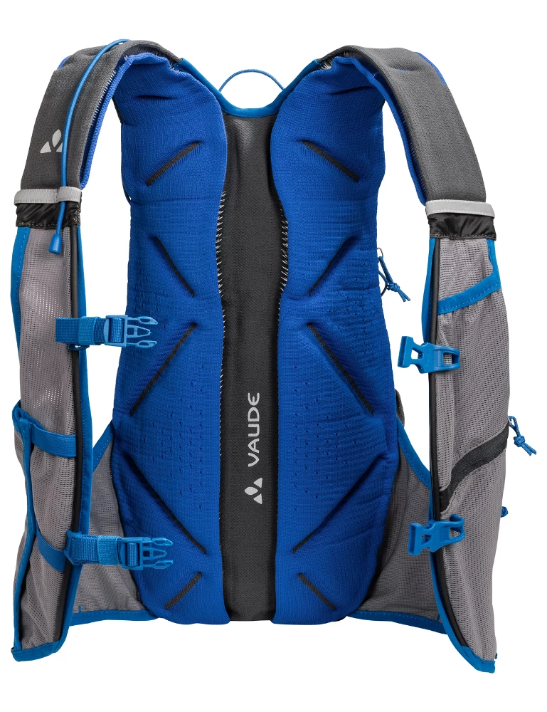 Leichter und äußerst bequem sitzender Rucksack für schnelle Wanderungen, sportliches Mountainbiken und Trailrunning. Das innovative 3D-Rückensystem ist an einem Stück ohne drückende Nähte gestrickt. Durch den dreidimensionalen Aufbau des Rückens bietet der Trail Spacer 8 einen angenehmen Klima- und Tragekomfort sowie leichte Dämpfung. Zudem ermöglicht diese einzigartige Technik verschiedene, dem Körper angepasste Polsterzonen, die für einen hervorragenden, druckverteilenden Sitz des Rucksacks sorgen. Trotzdem kann die Wärme am Rücken durch das textile Material entweichen. Ein schöner Nebeneffekt: Da das Rückensystem auf Form gestrickt wird und ohne Schäume auskommt, fallen bei der Produktion keine Abfallreste an. Der Trail Spacer 8 bietet alles, was man auf einer schnellen, sportlichen Tour benötigt. Die westenartige Rucksack-Konstruktion bietet viel Bewegungsfreiheit, zwei Brustgurte sorgen zusätzlich für einen festen Sitz. Was während der Tour schnell erreicht werden muss, findet Platz in den Schultergurttaschen, wie z. B. eine Trinkflasche, Müsliriegel oder Handy. Trinkblase, Regenjacke und Erste Hilfe Set lassen sich im Hauptfach verstauen. Die Stockhalterung und die Kompressionsriemen können auch mit aufgesetztem Rucksack schnell und einfach bedient werden. Reflektierende Elemente und die Möglichkeit zur Befestigung eines Blinklichts erhöhen die Sichtbarkeit und Sicherheit in den Dämmerstunden.